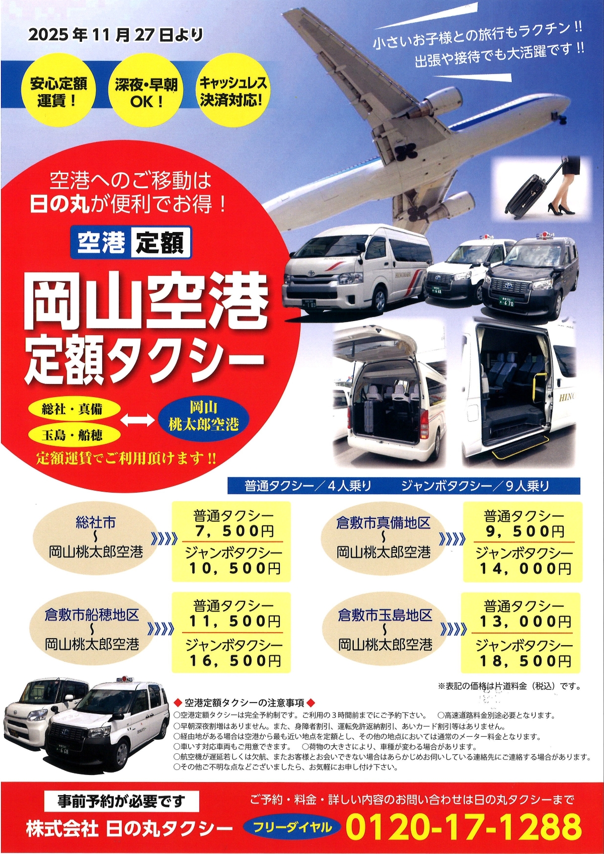 空港定額タクシー運賃改定のお知らせ【真備・総社】